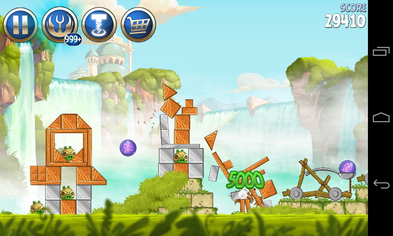 در این محیط تنها چیزی که بازیکن می تواند کنترل کند زاویه و قدرت پرتاب است اما همین انتخاب هم به صورت آزادانه صورت می گیرد و در هرجهتی که مایل بودید و با هر شتابی می تونید پرنده خود را شلیک کنید و در هنگام پرواز پرنده هم هر کجا که لازم دیدید قدرت تخریب و آن اکشن های زیبایی که برای هر پرنده اختصاصی طراحی شده را مورد استفاده قرار دهید .